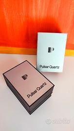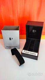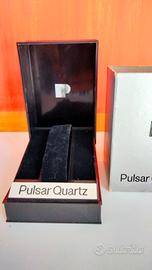 Custodia Pulsar Quartz per orologi. Risalente agli anni 90. Colore argento metallizzato.