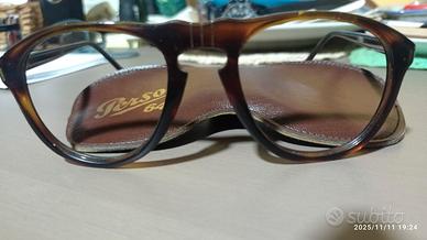vendo custodia vintage originale Persol 649 corredata di montatura Persol senza lenti e con le aste scheggiate in prossimita' delle cerniere.