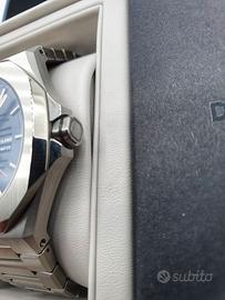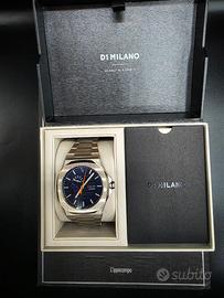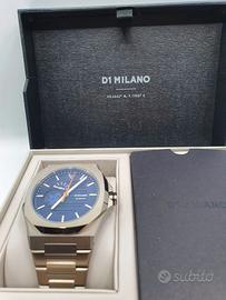 PREZZO SUPER e INTRATTABILE 380 euro. Ha un prezzo di vendita di €795,00 potete controllare voi stessi anche sul sito ufficiale. Orologio ormai quasi sempre SOLD OUT. Messaggi con eventuali proposte o offerte al ribasso verranno ignorati e non avranno risposta. Orologio Nuovo! Mai indossato! Pellicole ancora applicate. Perfetto in ogni suo dettaglio. Corredo completo, libricino garanzia datato 20/03/2026. Arrivato direttamente dallo store Ufficiale D1 Milano! Vendo a prezzo di usato nonostante sia NUOVO! Caratteristiche Tecniche: Dimensione Cassa: 41.5 mm compreso corona Materiale Cassa: Titanium, Brushed and Polished Bracciale: Silver Titanium Chiusura: Hidden Butterfly Clasp Ghiera: Silver Titanium Fondello: Silver Titanium, See-Through Quadrante: Blue and Silver, Engraved, Open Heart Lancette e Indici: Silver Titanium, Orange Second Hand Vetro: Sapphire, Anti-Reflective Coating Movimento: Seiko SII NH39, Mechanical Automatic Resistenza all'acqua e Peso: 5ATM, 114g SKU: D1-LNBJ01 Orologio multifunzionale in titanio che rende omaggio alla Milano degli anni '60, con una vestibilità senza peso di 114 g. Con quadranti secondari a cuore aperto e contatore delle 24 ore, linee del quadrante incorporate, indicatore delle ore "0/12" e lancetta dei secondi arancione, tutti progettati in base al simbolo iconico della città: il tram. Prodotto Originale Una volta visionato l'orologio e verificato che ogni suo dettaglio sia come descrizione, vale la modalità Visto e Piaciuto.