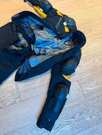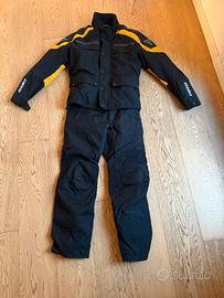 Completo composto da giacca waterproof con il suo interno staccabile trapuntato e le sue protezioni spalle e gomito sino al polso+pantalone agganciabile con zip, con il suo interno staccabile e le sue protezioni ginocchio sino alla caviglia. USATO SOLO 1 VOLTA. Molto caldo di inverno, perfetto senza imbottitura nelle mezze stagioni e con la pioggia. Ha lo spazio anche per il paraschiena da acquistare a parte. Taglia 46.
