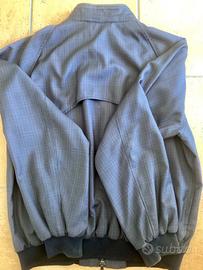 Splendido ed originale giaccone vintage della DAKS, Made in Italy, 100% lana leggera, mezza stagione, taglia M. Usato ma in ottime condizioni, senza strappi o parti consumate, solo da rinfrescare perché è stato molti anni in armadio. Ottima qualità del tessuto. Blu scuro con fantasia leggermente più chiara. Modello harrington con bottoncini al collo e molla in vita e sui polsi. Due tasche interne.