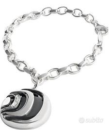 Damianissima.925 è la prima collezione di gioielli in argento e diamanti di Damiani, dal forte impatto visivo e dal design innovativo, realizzata in due versioni per soddisfare l’esigenze di personalità diverse: una dai toni chiari grazie all’utilizzo della madreperla dal carattere delicato; l’altra dai toni più scuri, caratterizzati dalla presenza dell’onice per una personalità forte e decisa. La linea di questa collezione di gioielli, realizzati interamente in argento 925, è enfatizzata dal design che interpreta il logo Damiani e dall’utilizzo di materiali alternativi, per un tocco giovane e sempre di tendenza. La D incassata con diamanti caratterizza e firma questa prima collezione di gioielli Damiani in argento. Forte della stessa artigianalità e savoir faire che contraddistinguono tutti i gioielli, la collezione Damianissima.925 propone prodotti alla moda e facili da indossare, perfetti per ogni momento della giornata e destinati a diventare un’icona per chi ama distinguersi ,Bracciale in argento con diamanti (ct 0.03) e onice.