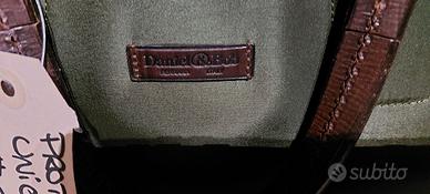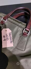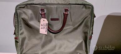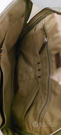 Tessuto tecnico verde con inserti in pelle marrone
