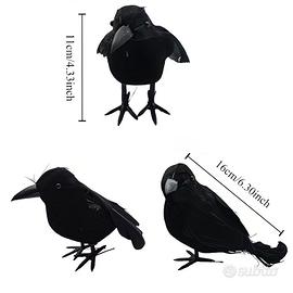 ✔️ 1 Corvo Nero con piume artificiali realistiche (10x18 cm)