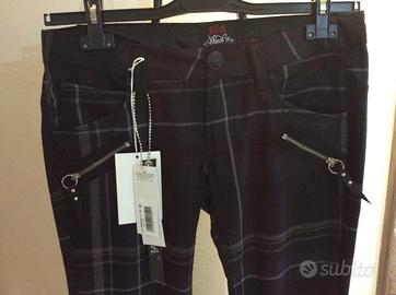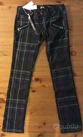 Datch pantaloni donna con 5 tasche chiusura con zip e bottone, fantasia scozzese. composizione:62% poliestere - 3% elastan - 35% viscosa.
