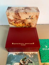 Rolex Datejiust set originale per referenza 69173, completo di libretti come da foto del 1990, calendario Rolex 1990/1991, porta garanzia, calendario e sigillo rosso olografo Rolex ‘90