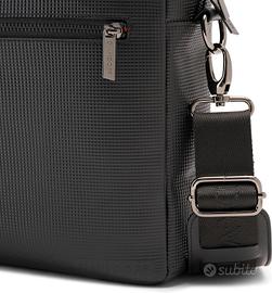 Spazio compartimentato – La borsa nera uomo include 2 scomparti separati, 1 scomparto per laptop imbottito, portachiavi, portapenne, tasca per cellulare, porta carte di credito e tracolla rimovibile.
