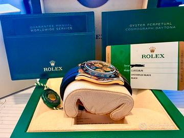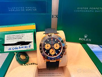 Rolex Daytona referenza:116518LN in oro giallo , del 16/10/2018 , movimento:4130, cassa 40 mm, quadrante paoul newman, indici crhomalith, ghiera in ceramica nera, cinturino oysterflex,e chiusura deployante, completo di scatola contro scatola , tag libretti, e garanzia card Italia…non trattabile, primo contatto via E-MAIL, per visione in gioielleria dove e video sorvegliata per tutela di entrambe le parti…. Dichiaro l’originalità dell’orologio.