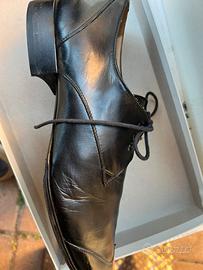 Scarpe in pelle nera morbidissima . Scarpa di alta qualita . Usata pochissimo ma tacchi e suole appena rifatti . Disponibile al ritiro a mano. Simile a moma premiata satorisan