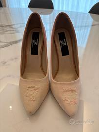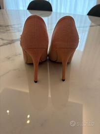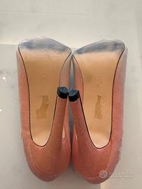 Vendo bellissime scarpe décolleté con tacco a spillo, caratterizzate da un design moderno e super originale. Perfette per chi cerca un accessorio che non passi inosservato! ✨ Caratteristiche principali: Colore: Elegante sfumatura (ombré) che va dal rosa pesca/salmone del tallone al panna/crema della punta. Materiale: Tessuto tipo denim/tela con una texture a costine molto raffinata. Stile: Look "distressed" con strappi decorativi sulla punta e sui lati, ideali per un outfit glamour ma con un tocco rock/urban. Punta: Classica punta sfilata, molto femminile. Misura: 36 (indicata chiaramente sulla suola). Brand: Perfect Calzature. 🔍 Condizioni del prodotto: Le scarpe sono in buone condizioni generali. Tomaia: Il tessuto esterno è ben conservato e i dettagli sfrangiati sono parte del design originale. Tacco: Integro, con sottotacco in gomma nera in ottimo stato (vedi foto). Suola: Presenta i normali segni di utilizzo (piccoli aloni scuri sulla parte anteriore dovuti al camminamento), che però non pregiudicano l'estetica una volta indossate. 💡 Consigli di stile: Ideali da abbinare a un paio di jeans boyfriend per un look casual-chic, oppure sotto un abito bianco o rosa pastello per un evento o una serata fuori. Spedizione veloce e pacco curato! Per qualsiasi domanda o ulteriori foto, non esitare a contattarmi.