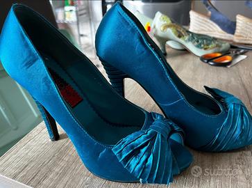 Bellissime décolleté aperte in Raso Blu Cobalto - Tacco 12 cm (N. 38)