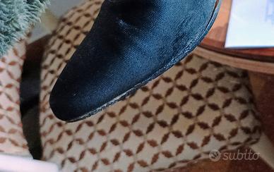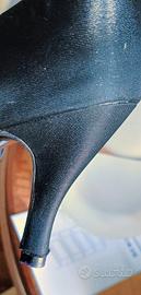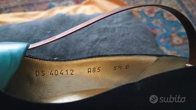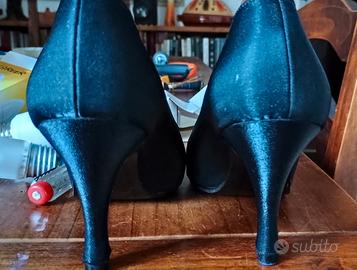 Magnifiche decolleté Salvatore Ferragamo originali in tessuto nero. Misura 35 1/2 - 36. Tacco cm.8, larghezza pianta cm.7. Sopratacchi nuovi. Colore nero. Piccola ombratura nero su nero, praticamente invisibile, su un lato della scarpa destra (ultima foto), da cui il prezzo basso. Usate pochissimo. Senza scatola