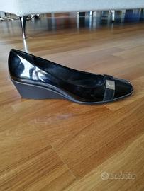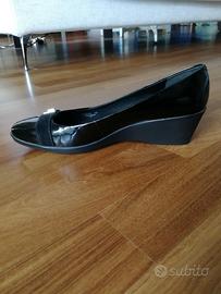 Décolleté in pelle, di vernice, colore nero. Para in gomma cm. 5. Scarpa usata una sola volta, come nuova