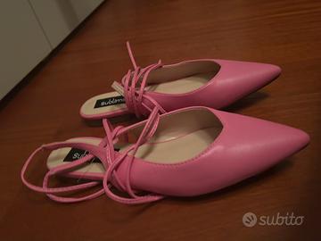 Décolleté numero 38, simil sabot ma con lacci da allacciare alla caviglia ed al polpaccio, rosa, senza tacco, in perfette condizioni poiché mai utilizzate. Comprate online nel 2023, non le ho utilizzate per gusto personale