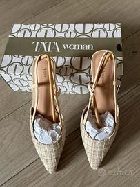 Bellissime décolleté beige con cinturino alla caviglia e tacco basso.