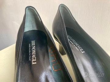 Calzature Bruno Magli in vera pelle nera, suola in gomma, tacco 4 cm, taglia 38.
