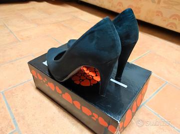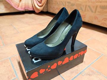 Scarpa décolleté in camoscio nero con plateau. Num. 38. Buone condizioni.