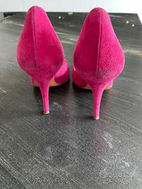 Vendo decollete open toe della celebre casa Casadei. Scarpe con suola in cuoio e sopra camoscio rosa/fucsia.