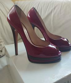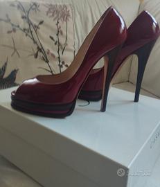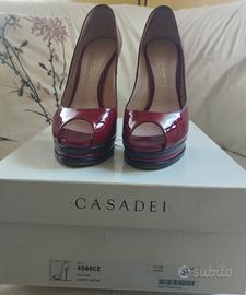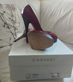 Décolleté spuntata Casadei ,tomaia in pelle verniciata rosso ciliegia ,plateau esterno e tacco a spillo. Usata pochissimo misura 38