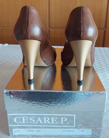 La forma raffinata, la texture pregiata della pelle e la fibbia in oro e madreperla, rendono questa décolleté un pezzo che cattura l'attenzione, mentre la punta affilata e il tacco alto oro creano un look chic. Colore Marrone/oro, Numero 36