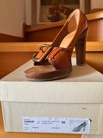 Décolleté Chloé cuoio mis 36 tacco 11 con fibia