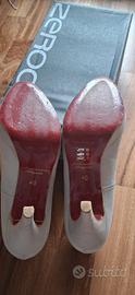 Décolleté color grigio chiaro, indossate in un paio di occasioni. Pellame e materiale di qualità. Tacco 10 cm.