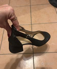 Elegante Décolleté Nere coni brillantini e cinturino alla caviglia. Marca What’s for. Tacco comodo largo. Manca scatola . Ottime condizioni