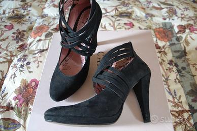 decollete con intrecci ,nere effetto velluttino, numero 38 tacco 10cm