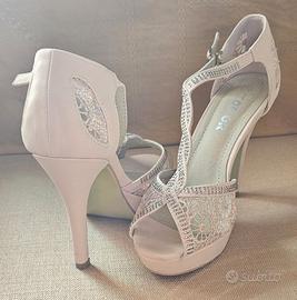 Scarpe decolletè Top Or con pizzo a rete - tacco 11 - come nuove, indossate solo una volta - adatte per occasioni eleganti - colore rosa cipria
