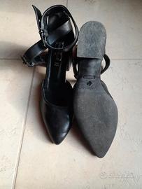 Scarpe décolleté Divine Follie in vera pelle nera, taglia 39. Modello elegante con punta leggermente affusolata e cinturini regolabili alla caviglia. Tacco medio di circa 5,5 cm, comodo e stabile. Scarpe usate ma in ottime condizioni, disponibile anche la scatola Perfette sia per uso quotidiano che per occasioni eleganti. Dettagli: - Marca: Divine Follie - Taglia: 39 - Materiale: vera pelle - Colore: nero - Tacco: circa 5,5 Disponibile per qualsiasi informazione