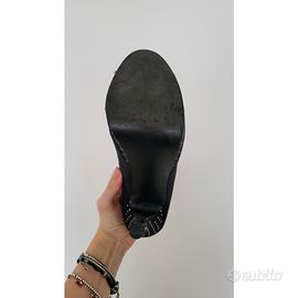 Scarpe col tacco da donna nere scamosciate con strass argento