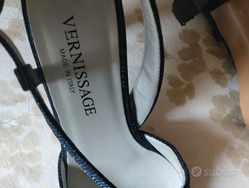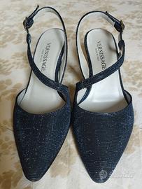Scarpe décolleté donna color blu brillantinato eleganti da cerimonia tacco cm 7 n. 37
