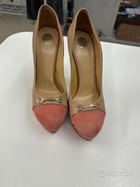 Décolleté bicolore beige e color pesca Elisabetta Franchi , vera pelle con punta in camoscio , n 39 utilizzata pochissimo,tacvo 10 con plateau 3 cm