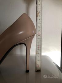 Decolletè emporio Armani taglia 39 color cipria, vera pelle, tacco 10cm, mai usate per problemi alla schiena. Difetto di 1cm e 1/2 su cucitura, dove si è tagliata la pelle, ma quando indossate invisibile. Come si vede nell’ultima foto.