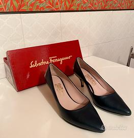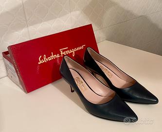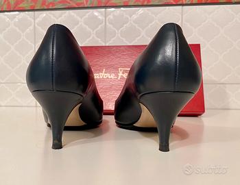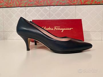 Un bellissimo Décolleté di Ferragamo in perfette condizioni. Le scarpe non sono mai state utilizzate e sembrano appena usicite di fabbrica. L’altezza del tacco è 6cm e il colore è blu petrolio