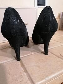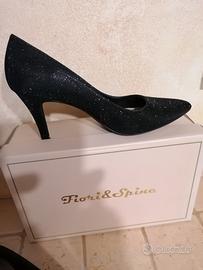 Bellissime scarpe décolleté a punta del brand Fiori & Spine, color nero glitterato.