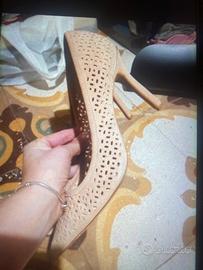tacco 10 cm scamosciato colore rosa, ottime condizioni, usato pari a nuovo messe una volta