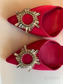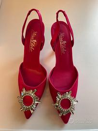 Décolleté fucsia in satin con applicazione pietre, numero 37, mai utilizzate. Tacco alto 9cm