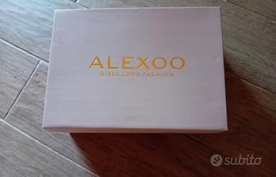 Bellissimi sandali con tacco alto del marchio Alexoo, colore fucsia. Perfetti per occasioni speciali. Sono tenuti molto bene a parte piccolo difetto Suola come da ultime due foto