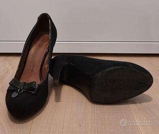 Decolleté Gaudi in camoscio nero con fiocchetto metallico. Tacco 11cm. Taglia 40. Indossate pochissimo, vendo per inutilizzo. Prezzo originario €95