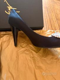 Décolleté in raso nero con guarnizione centrale in cristalli tacco 10 taglia 37