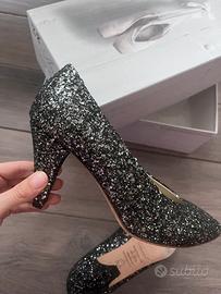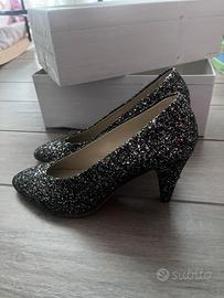 Scarpe artigianali Made in Italy - glitterate argento/nero - numero 38 Tacco 9cm, indossate una volta