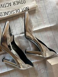 Eleva il tuo look con queste iconiche décolleté firmate Golden Goose Deluxe Brand. Un mix perfetto di artigianalità italiana e stile rock-chic. Il colore argento specchiato e i dettagli di borchie sulla punta le rendono il pezzo forte di qualsiasi outfit, dal jeans all'abito da sera.