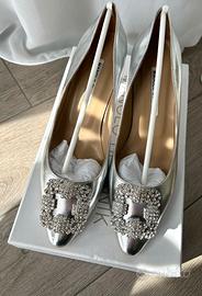 Causa totale inutilizzo per taglia errata vendo bellissime decollete colore argento in vera pelle, solletta in cuoio (ancora protetto da pellicola adesiva) e tacco 7 cm molto comodo. Calzano piccole, marchiate 39 ma più adatte ad un 38. Soletta interna 24,5 cm. Complete di scatola e dustbag. Consegno a mano su Milano, spedisco altrove con qualsiasi corriere previsto da TuttoSubito. Buono shopping sostenibile!