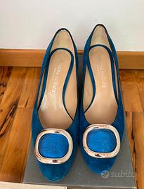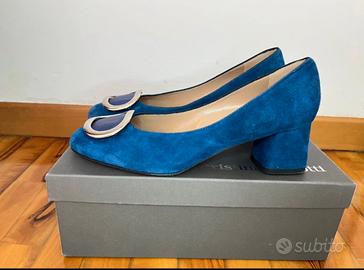 Décolleté in camoscio blu cobalto n. 37.5 Cristina Millotti. Scarpe indossate soltanto due volte, in perfette condizioni. Altezza tacco 5cm. E’ presente anche il certificato di autenticità