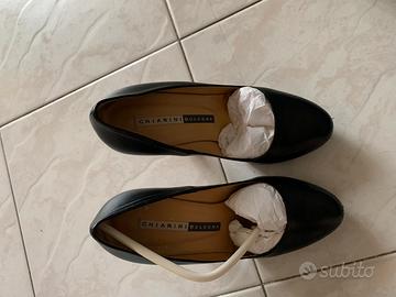 Scarpe décolleté con plateau in capretto nere , n 35. Usate si e no 3 volte , con scatola originale