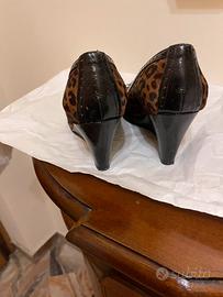 DECOLLETE’ IN CAVALLINO MIS. 38,5 CON TACCO A ZEPPA IN VERNICE NERO CM. 8 MELLUSO COLLECTION