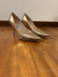 Vendo scarpa décolleté in pelle color oro cipria metallizzato nr.37, in buono stato. Ideali per completare un abito da cerimonia o da serata