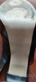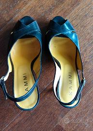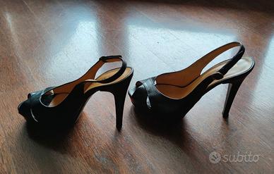 Bellissime decollete aperte, in vera pelle, colore nero, made in Italy, numero 37, tacco 7 cm, indossate 2 volte
