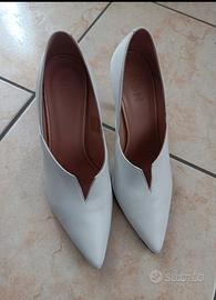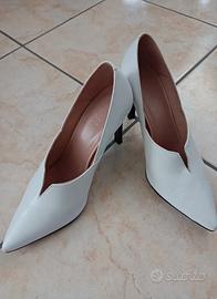 Décolleté in pelle bianche con tacco nero alto 9 cm, numero 38, marchio Zign.